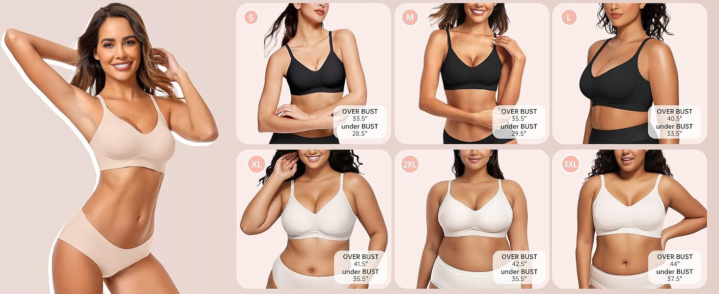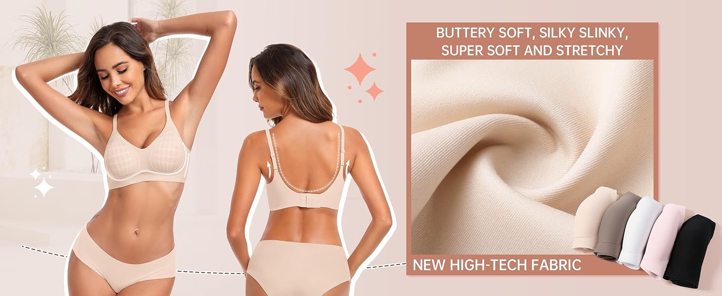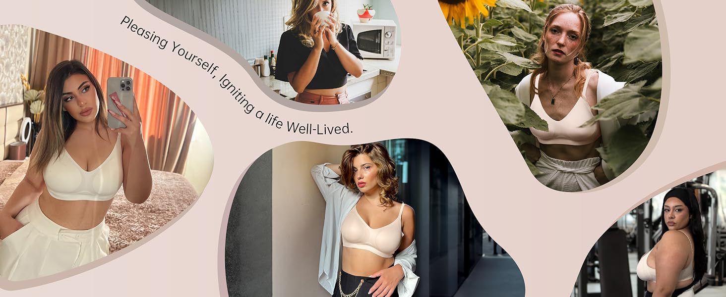 【Lightly Lined Wirefree Bra for Women】Our lightly lined wirefree bra is made of 66% nylon and 34% spandex. Our comfortable seamless bra gives you a "ultra Comfortable" feeling, making it suitable for 24-hour wear as both an everyday bra and a sleep bra.