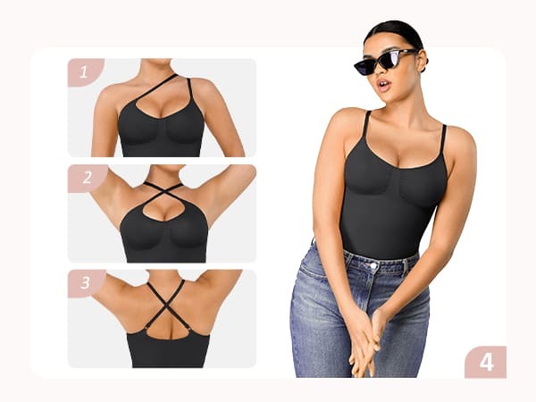 Adjustable spaghetti straps prevent slipping, and the crossover crotch design makes it easy to put on and take off.