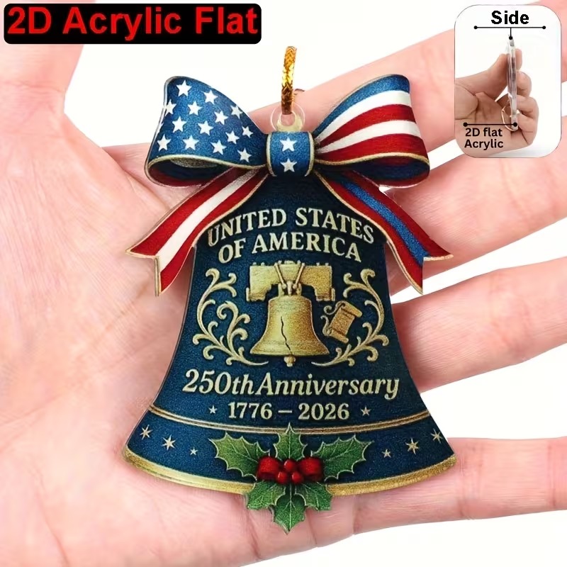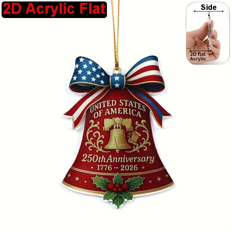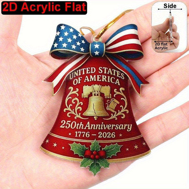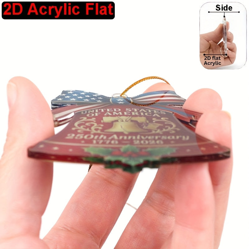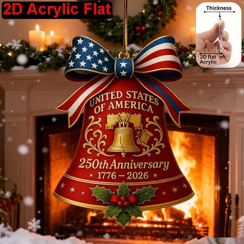 2D Flat United States 250th Anniversary Bell Acrylic Ornament - Patriotic American Flag & Seal Design