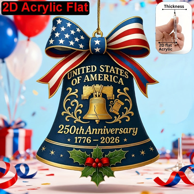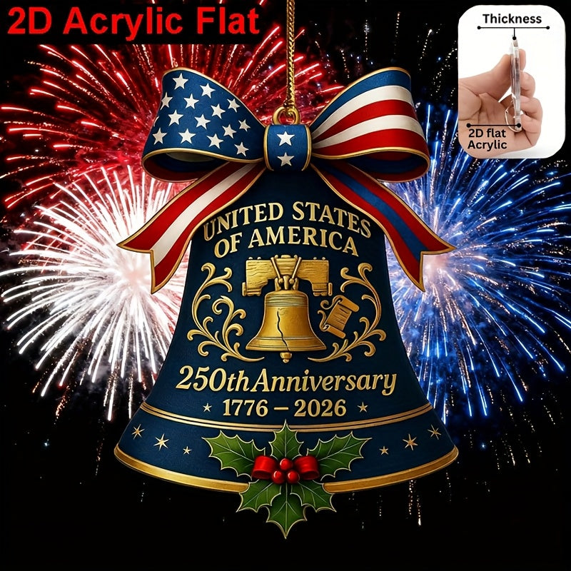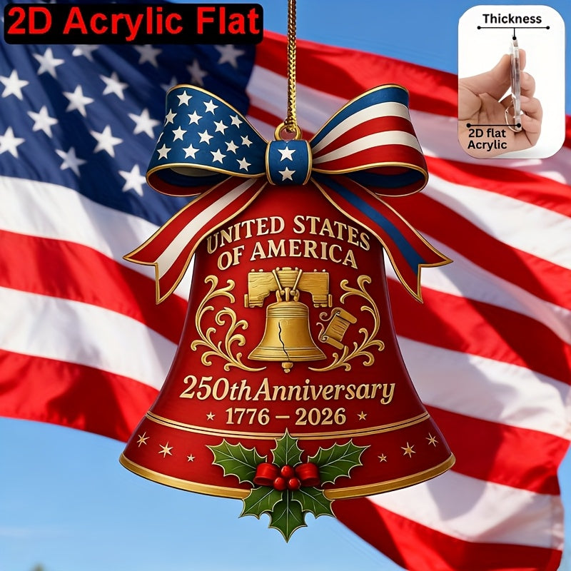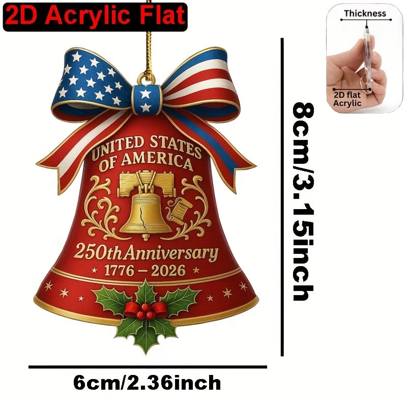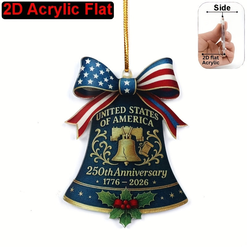 2D Flat United States 250th Anniversary Bell Acrylic Ornament - Patriotic American Flag & Seal Design