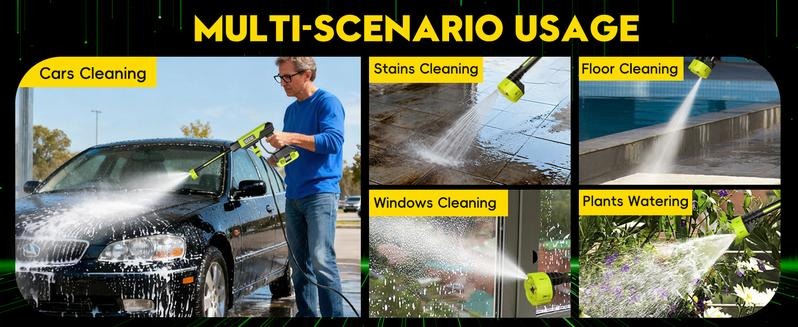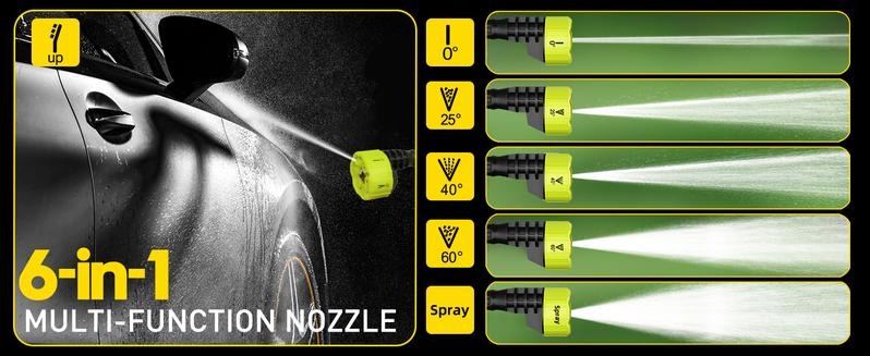 Cordless pressure washer with 6-in-1 adjustable nozzle